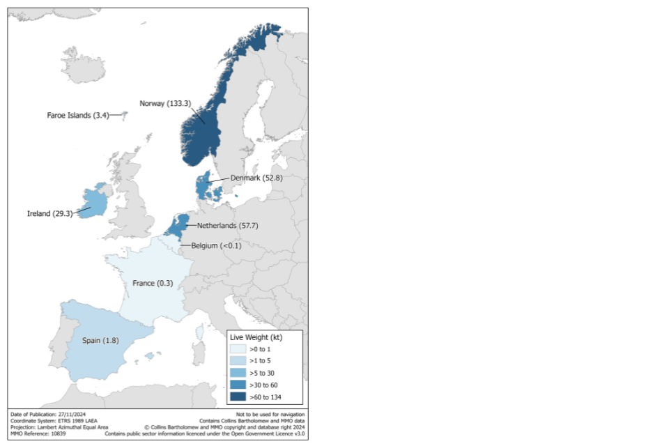 54% (240 thousand tonnes) of pelagic fish landed by the UK fleet was from the Northern North Sea in 2023.