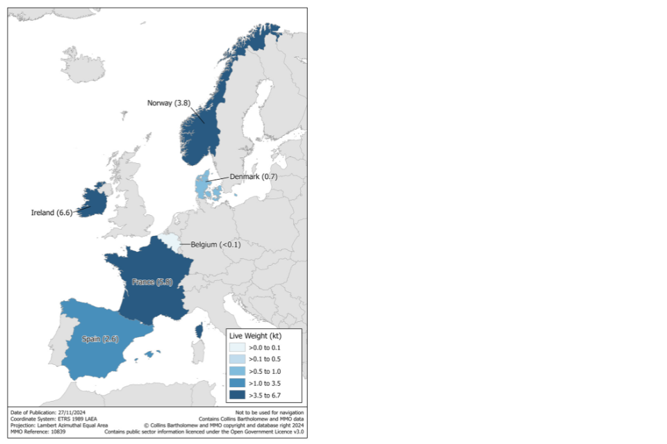 Figure 2.19: Quantity of landings in UK ports by foreign vessels in 2023.