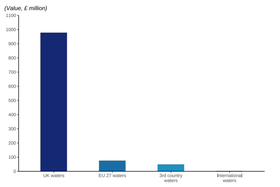 Figure 2.23: Value of landings caught by UK vessels in 2023 by waters.