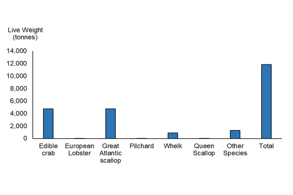 - The key species landed include: Edible crab; Great Atlantic scallop; Whelk; European lobster; and Pilchard.