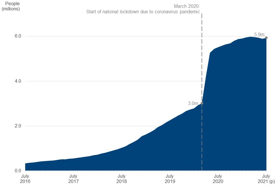 There were 5.9 million people on Universal Credit on 8 July 2021.