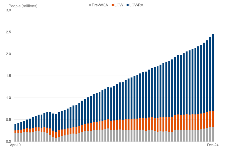 At December 2024, 71% of people (1.8 million) on UC health have limited capability for work and work-related activity