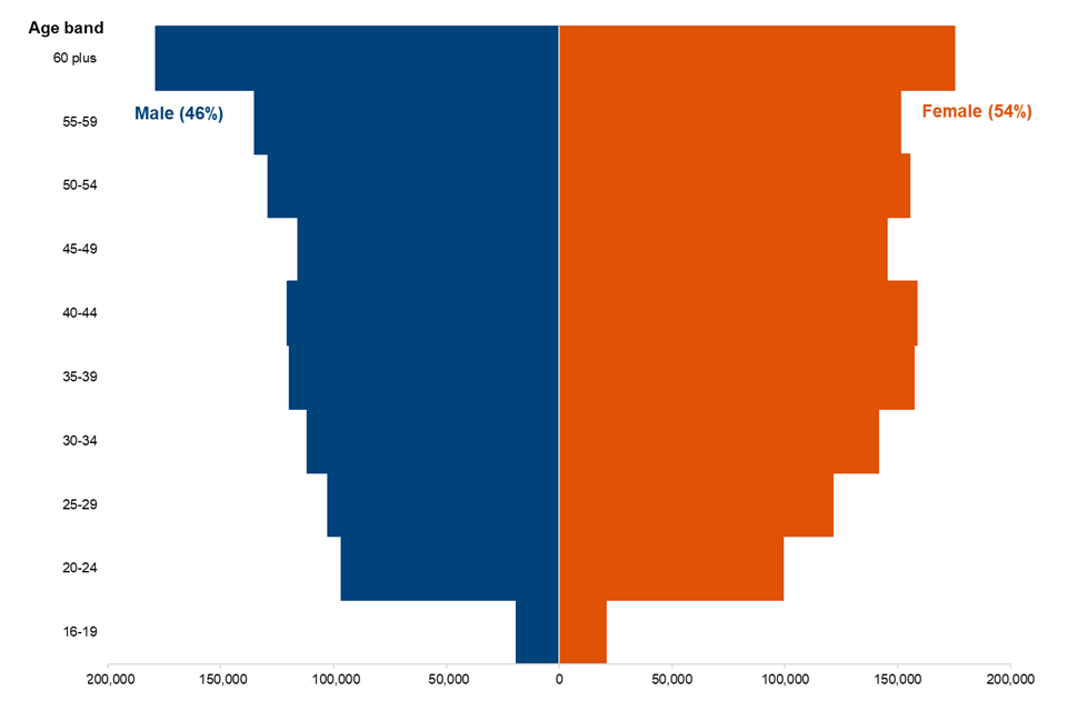 At December 2024, 54% of those on UC health were female. Of all claimants, 38% were aged 50 plus and 10% aged under 25.
