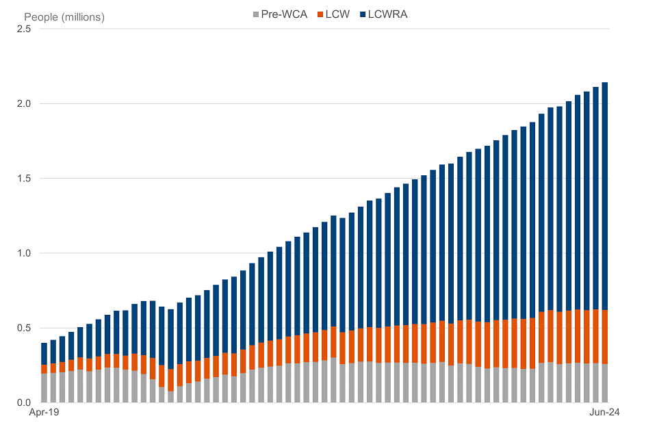 At June 2024, 71% of people (1.5 million) on UC health have limited capability for work and work-related activity.