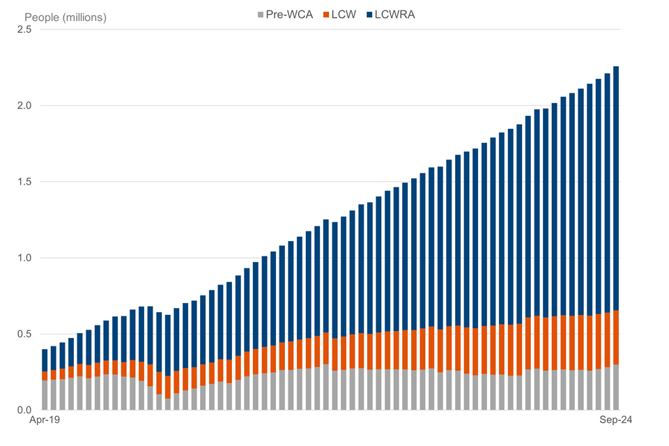 At September 2024, 71% of people (1.6 million) on UC health have limited capability for work and work-related activity.