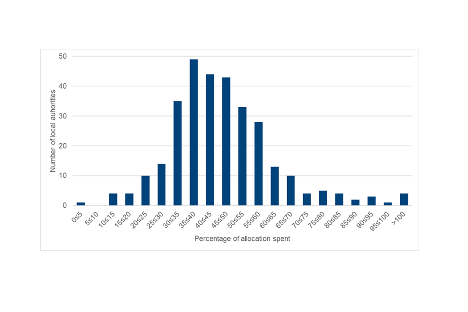 Around 48% of local authorities spent between 40% and 60% of their allocation