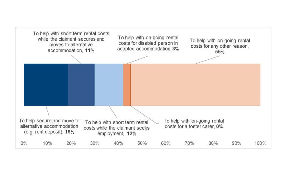 Over a quarter (30%) of DHP expenditure was related to moving to alternative accommodation. 12% was to help with short-term rental costs while the claimant sought employment, while 3% went towards costs for disabled people in adapted accommodation.