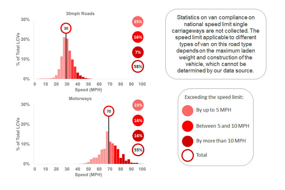 On motorways, 55% of vans exceeded the speed limit compared to 58% on 30mph roads.