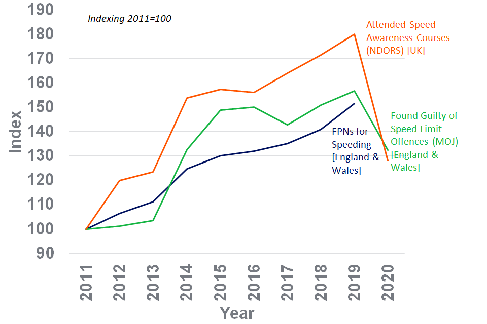The scope of the Home Office series includes those cases which resulted in either a FPN being issued to the driver, a driver retraining course (such as a speed awareness course) was attended by the individual, or cases where the individual faced court action.
