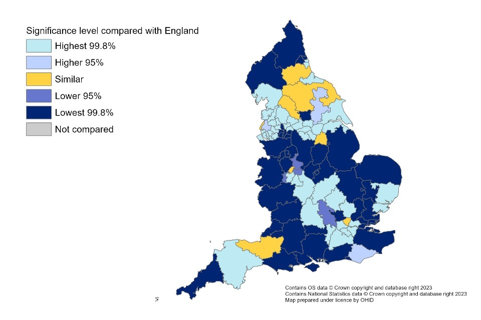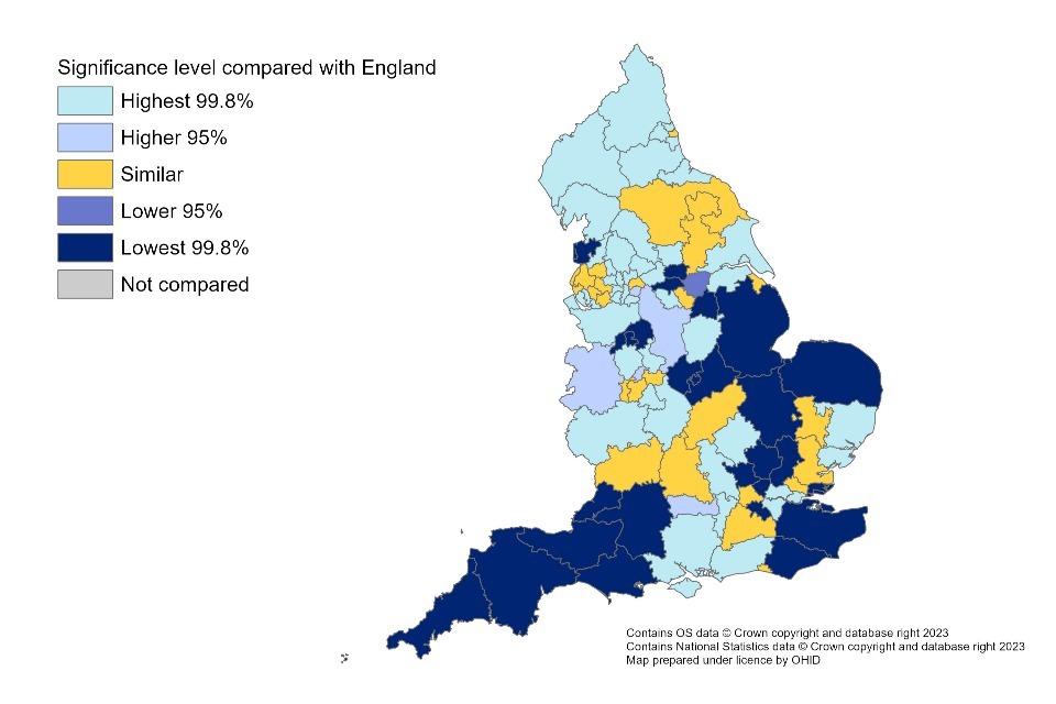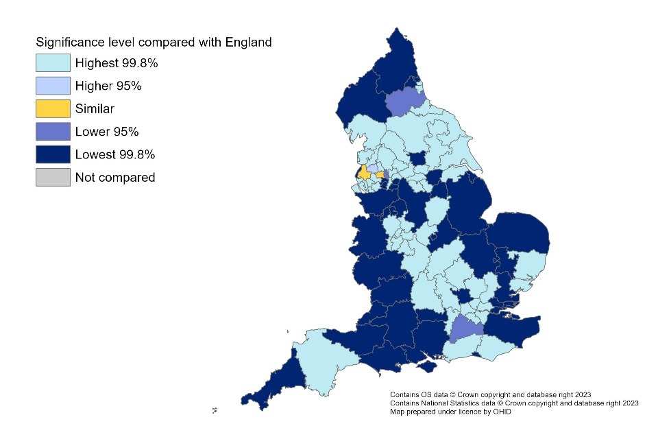 The website contains where available data for sub-ICBs, ICBs, upper tier local authorities, lower tier local authorities, former Government Office regions and England.