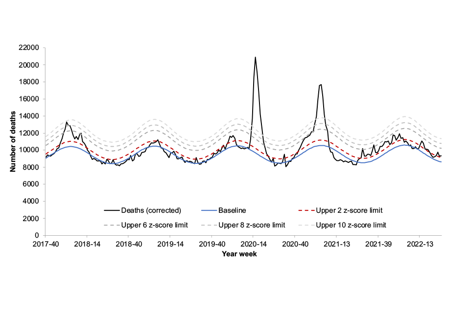 The coronavirus (COVID-19) pandemic period is excluded from the baseline thresholds calculation. Excess mortality triggers further investigation of spikes and informs any public health responses.