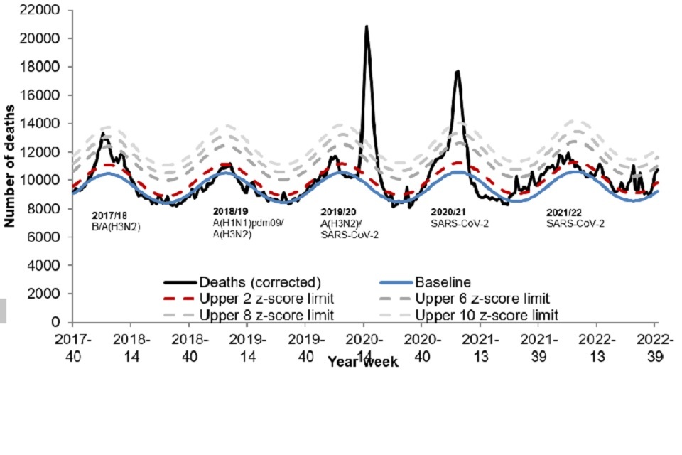 The coronavirus (COVID-19) pandemic period is excluded from the baseline thresholds calculation. Excess mortality triggers further investigation of spikes and informs any public health responses.