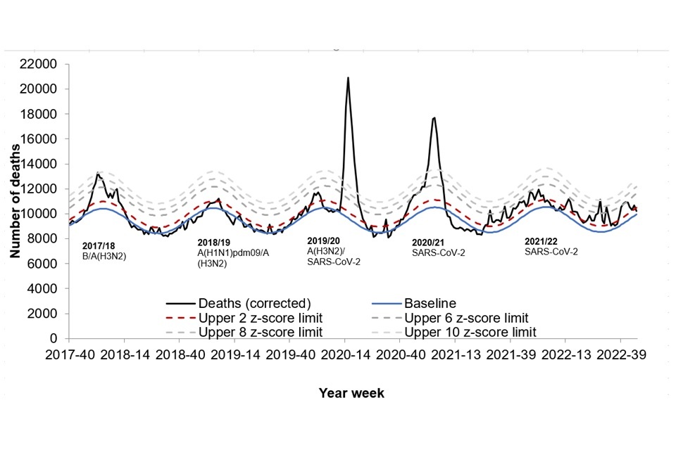 The coronavirus (COVID-19) pandemic period is excluded from the baseline thresholds calculation. Excess mortality triggers further investigation of spikes and informs any public health responses.