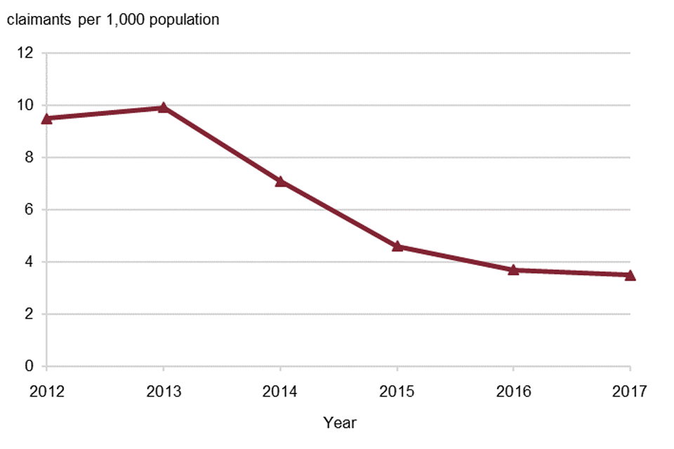 Figure 3: trend in long-term claimants of JSA, England, 2012 to 2017