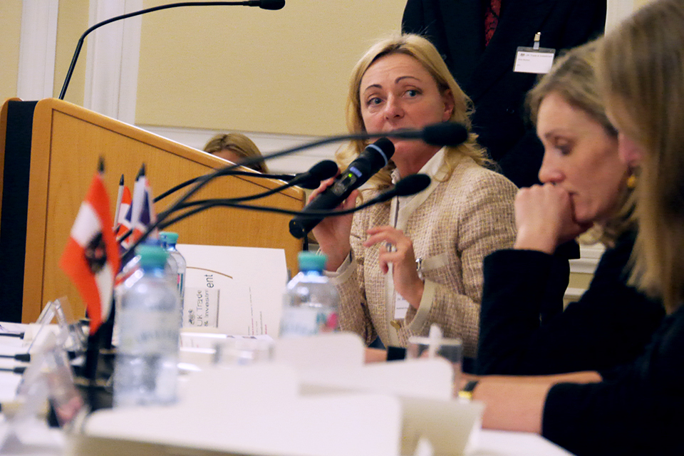 Dr Barbara Kolm speaking to Austrian companies attending UK Investment event