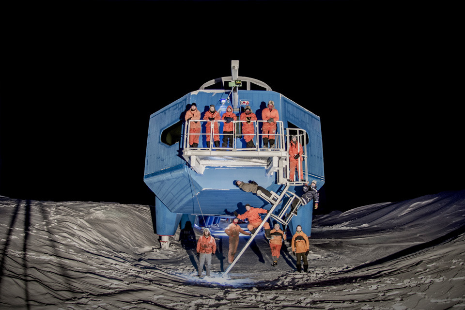 Staff at Halley Research Station celebrating Mid-Winter's Day.