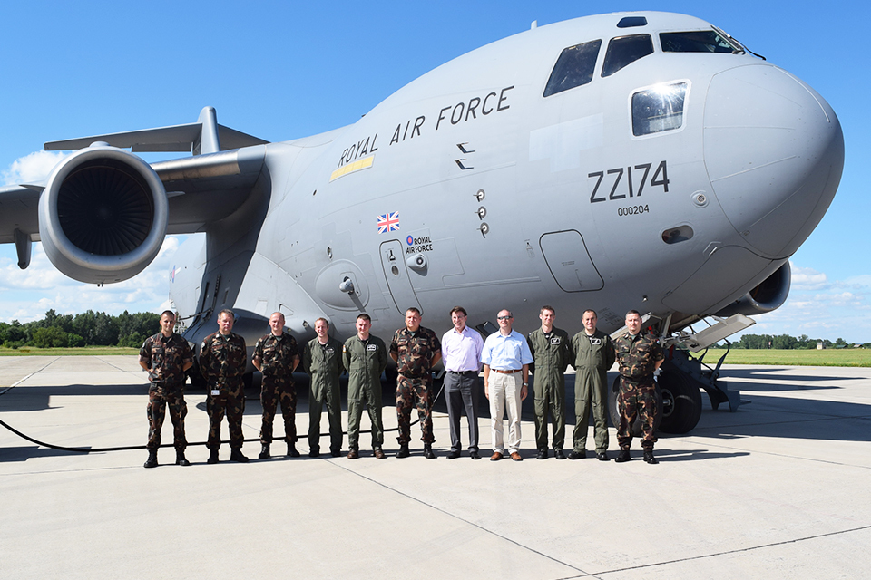 The UK’s Ambassador to Hungary has praised strong ties between the UK and NATO allies Hungary, following the Royal Air Force’s first ever deployment of a C-17 strategic transport aircraft to the country for night flying training. The 99 Squadron C-17, based at RAF Brize Norton in Oxfordshire, will work with the Hungarian Air Force (HAF) to conduct night vision goggle training at Hungary’s specialist C-17 airbase, Pápa. A Saab Gripen fighter from the HAF’s 59/1 ‘Puma’ Squadron escorted the C-17 during its first day of training to welcome the RAF to Hungary.