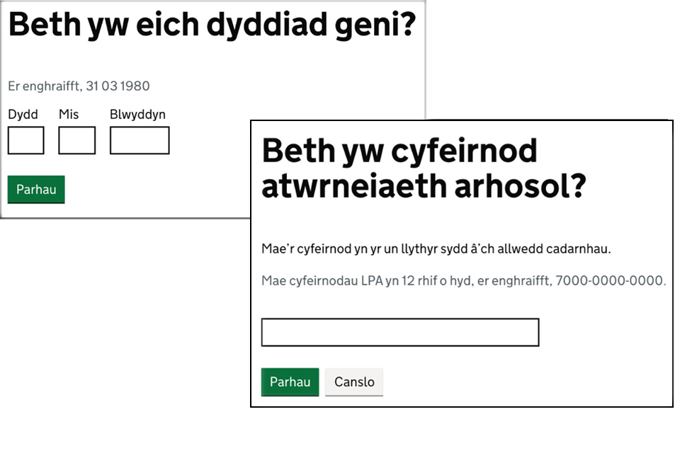 Gofynnir i chi roi eich dyddiad geni. Gwneir hyn i wirio mai chi yw’r person sydd wedi’i restru ar yr LPA.