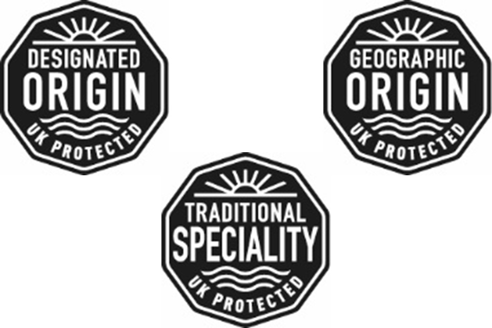 There are 3 UK GI scheme logos that mark each designation of geographical indication (GI):