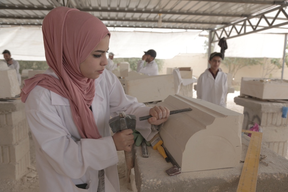 World Monuments Fund© Syrian Stonemasonry Training Scheme Project; Stonemasonry student undertaking training at Mafraq, Jordan.