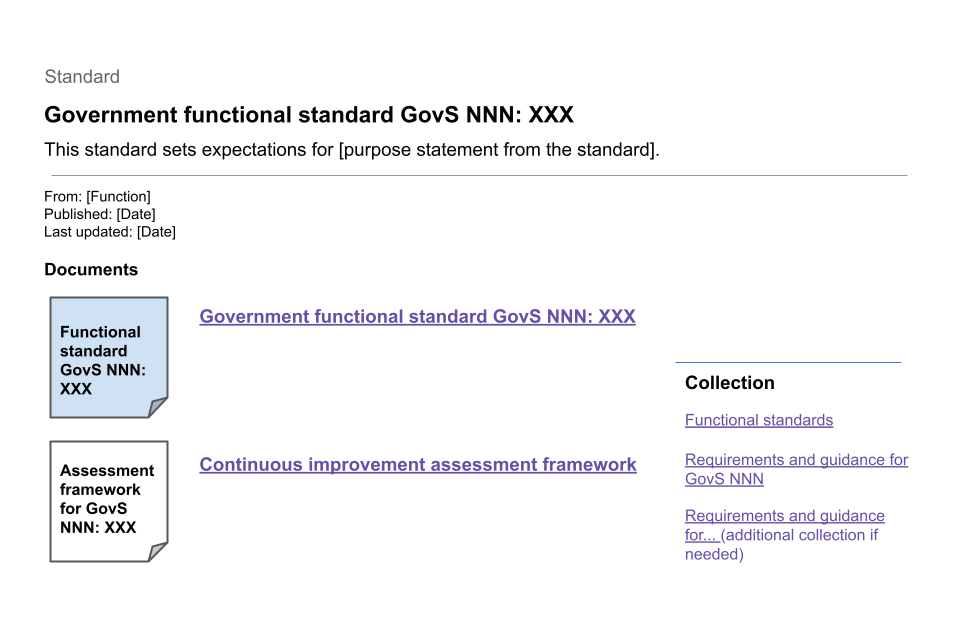 Cross-government documentation related to the functional standard should be grouped together as a collection or group of several collections (see figure 2), and requirements and guidance consistently categorised.