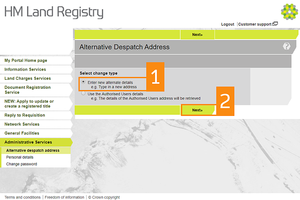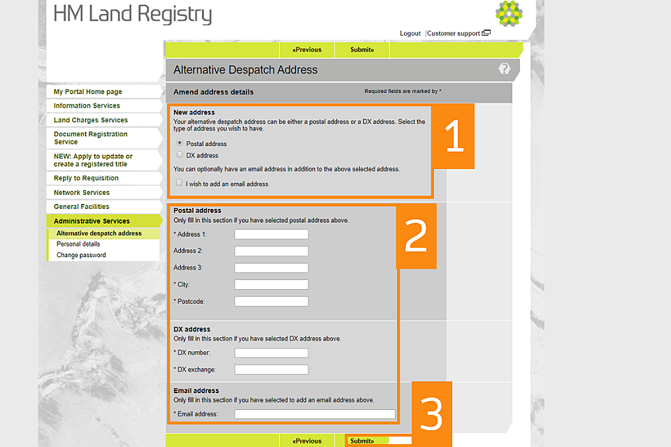HM Land Registry will issue despatch documents electronically for applications dealt with manually at a local office. If this is not possible, the documents will be issued to your default variable Direct Debit (VDD) postal address or DX address recorded on the My Portal homepage.