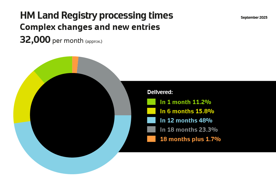 We complete half of all applications to register land or property for the first time in about 10 months. We complete almost all in about 14 months, but a minority might take a few weeks longer depending on the application.
