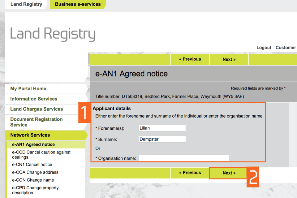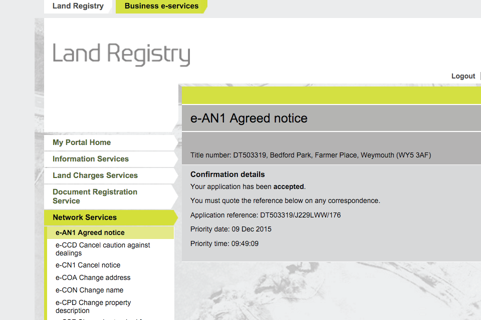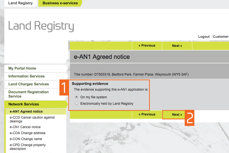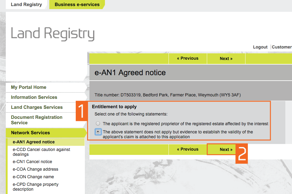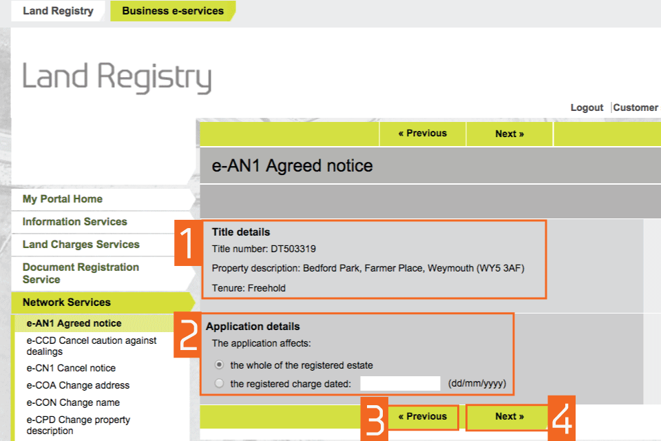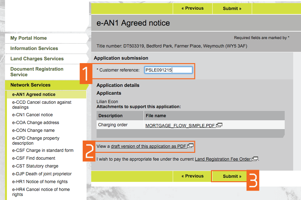HM Land Registry portal: agreed notice to note a charging order (e-AN1)