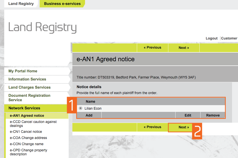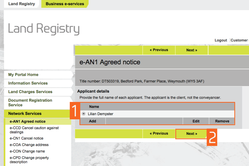 - If they are not correct you will need to check that you entered the correct title number. Select ‘Previous’ to return to the previous step to amend the title number.