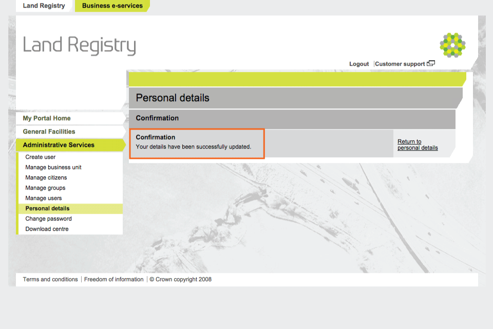 To view or change your other user details, select the ‘Return to personal details’ link on the right hand side.