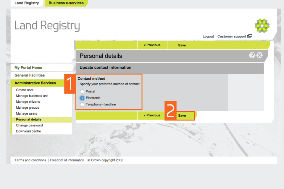 - Choose your preferred contact method: * Postal * Electronic * Telephone - landline