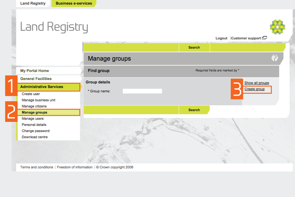 HM Land Registry portal: create a group of users