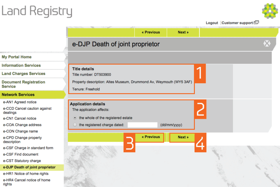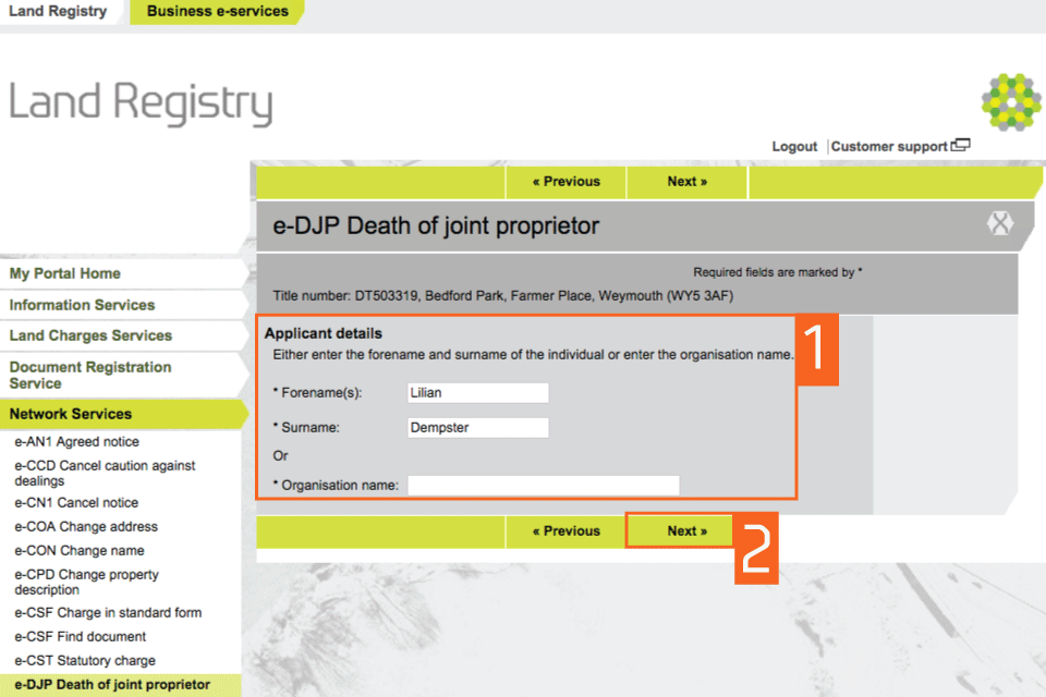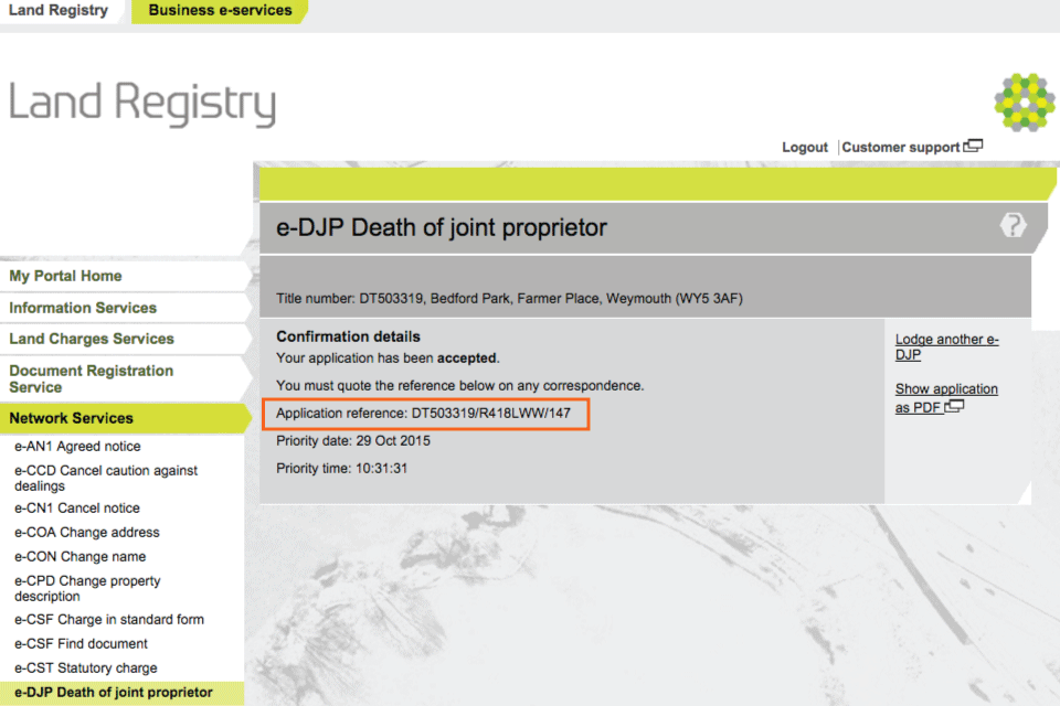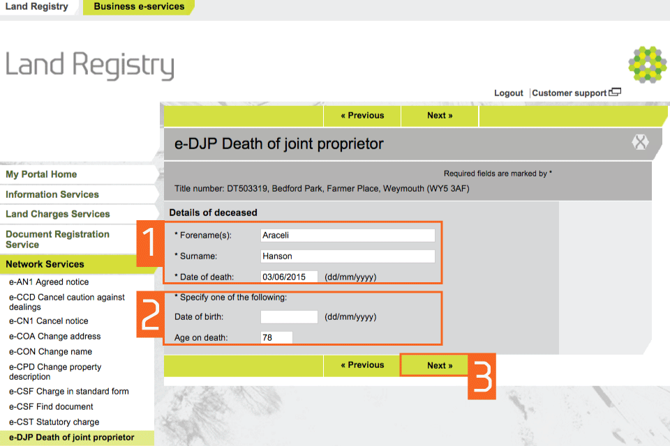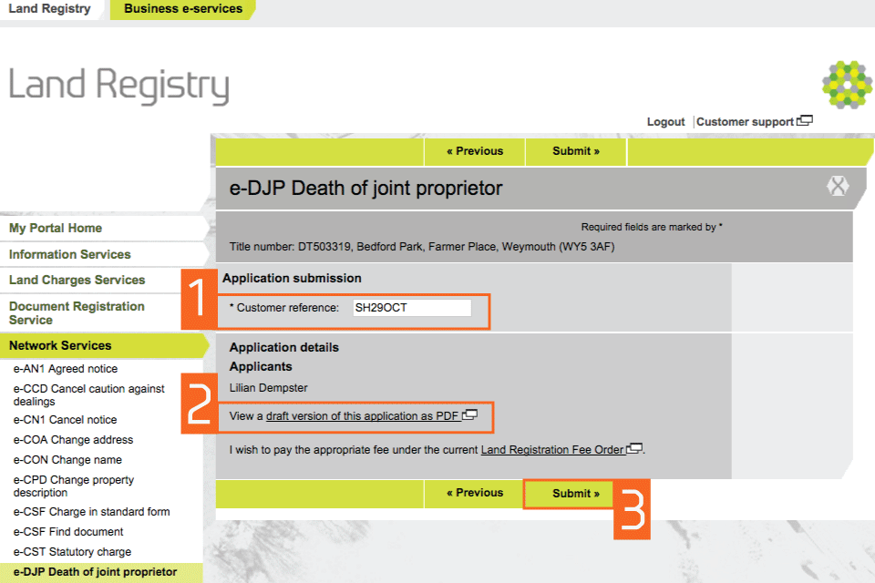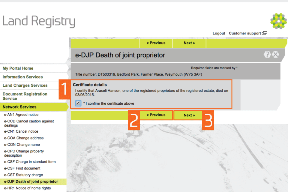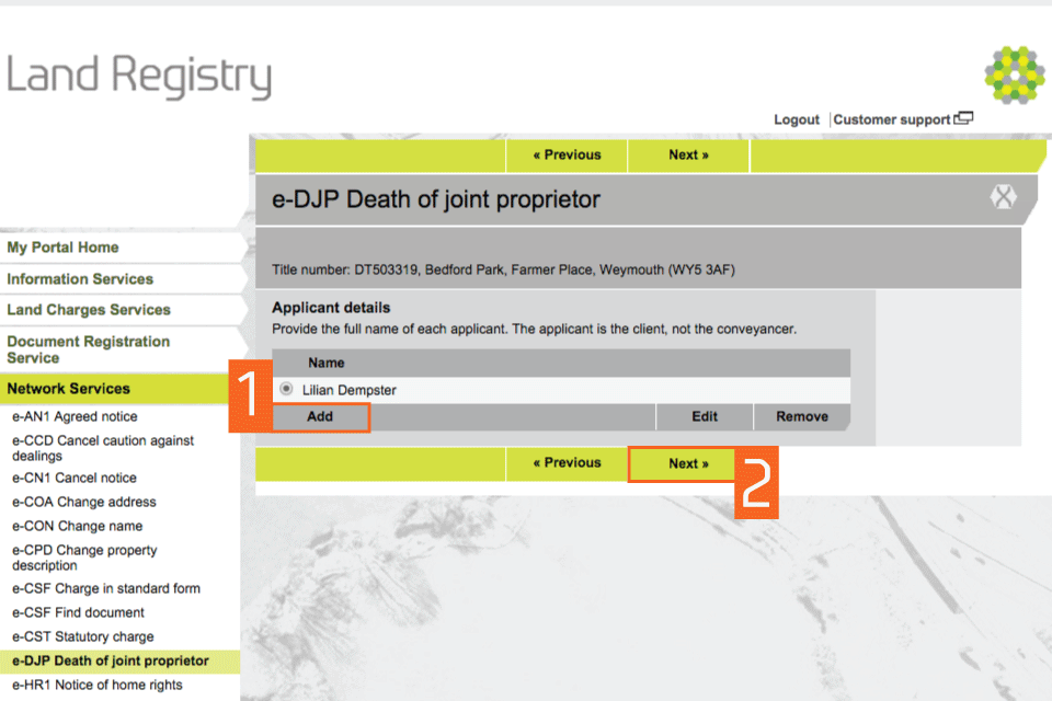 HM Land Registry portal: death of a joint proprietor (e-DJP)