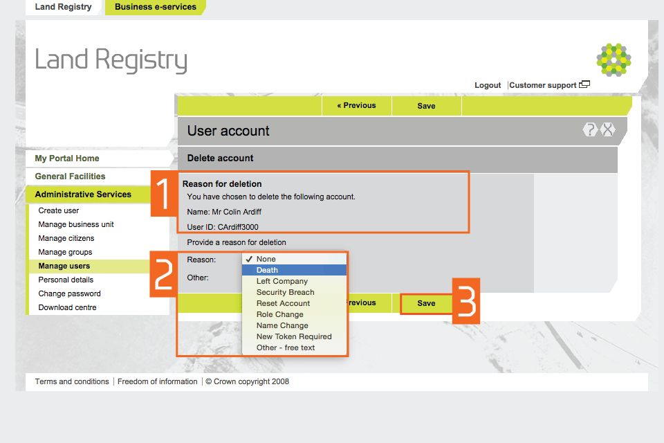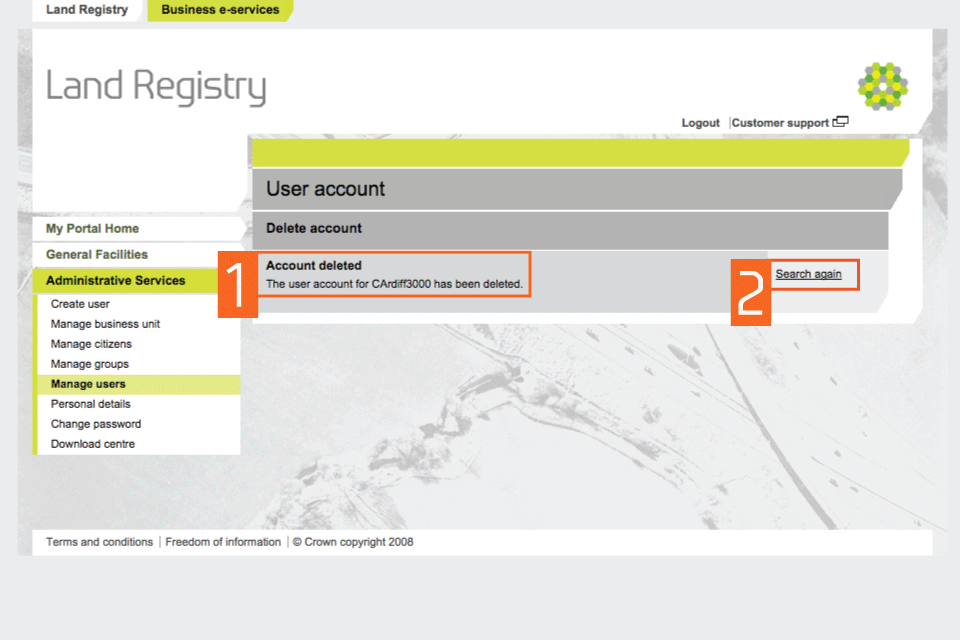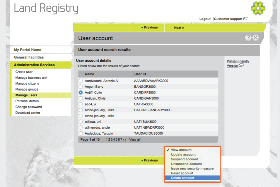 HM Land Registry portal: delete a user account