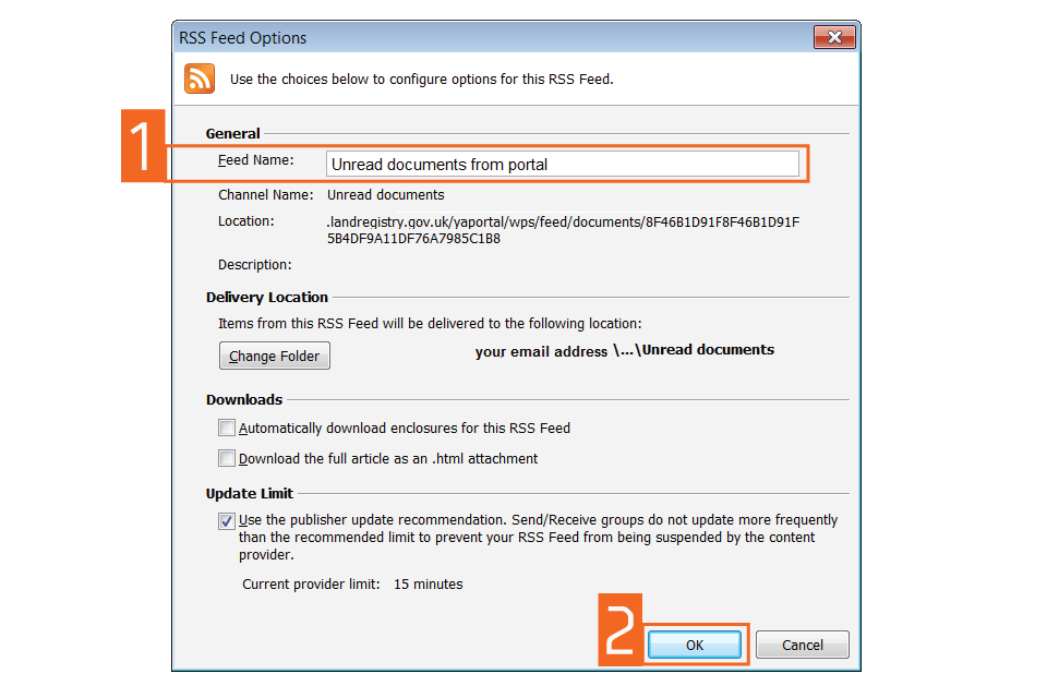By setting up notifications, or RSS feed, you will automatically receive updates from HM Land Registry when your documents are sent to the portal.