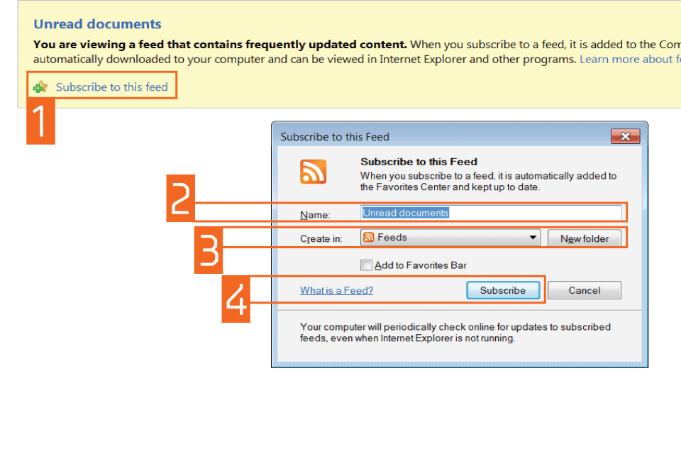- To setup an RSS feed through your Internet browser select ‘Subscribe to this feed’ and this will open a dialogue box.