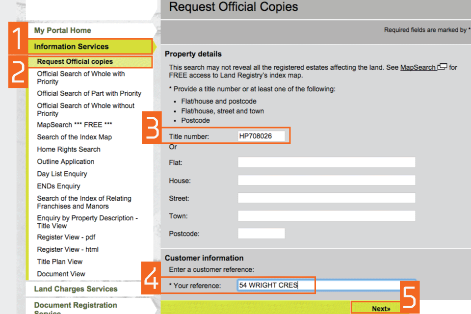 - To help identify the document, complete the date and if appropriate the title number it is filed under, eg ‘23/05/1999’ and ‘HP70827’