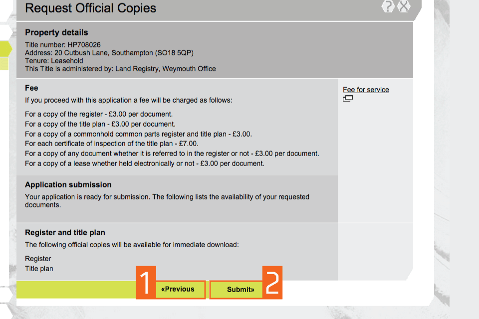 After ordering official copies of documents, you will get a summary of fees and a list of documents requested.