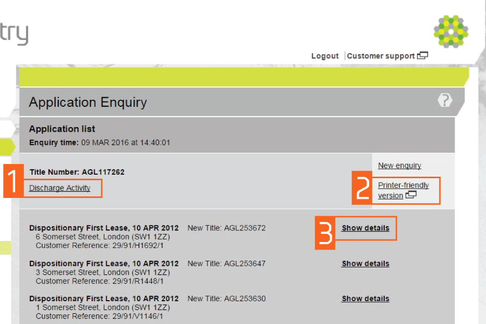 - Select ‘Discharge Activity’ to find out whether any charges have been discharged against this title number within the previous 30 calendar days.