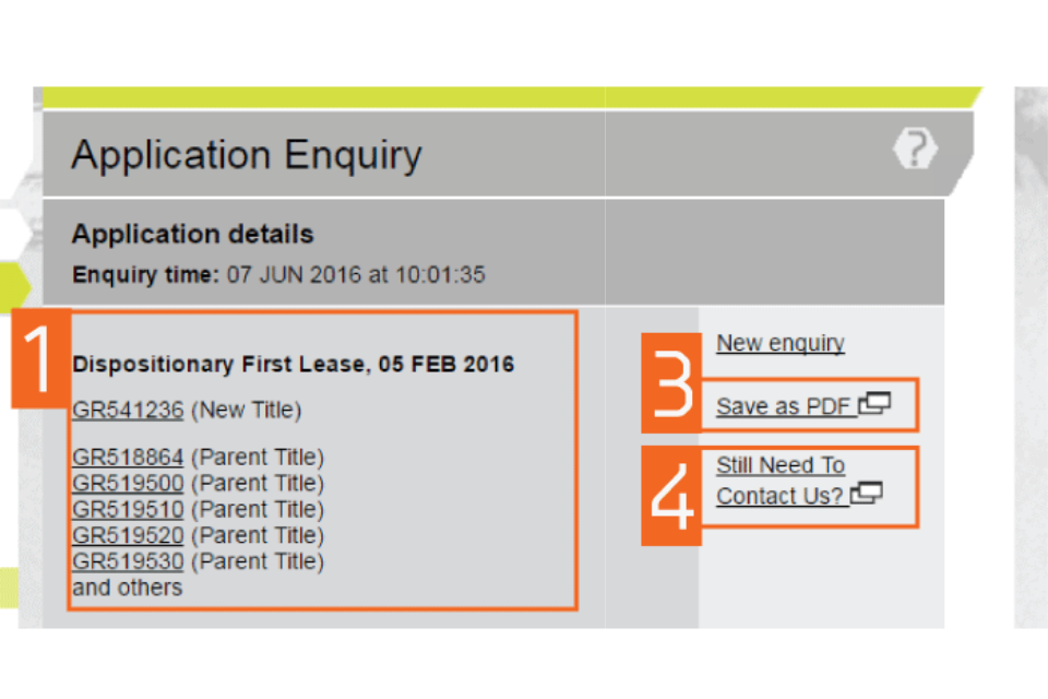 - Select a ‘Parent Title’ link to get a list of the pending applications for that title. Only transfer of part or new lease applications will show details of a parent title.