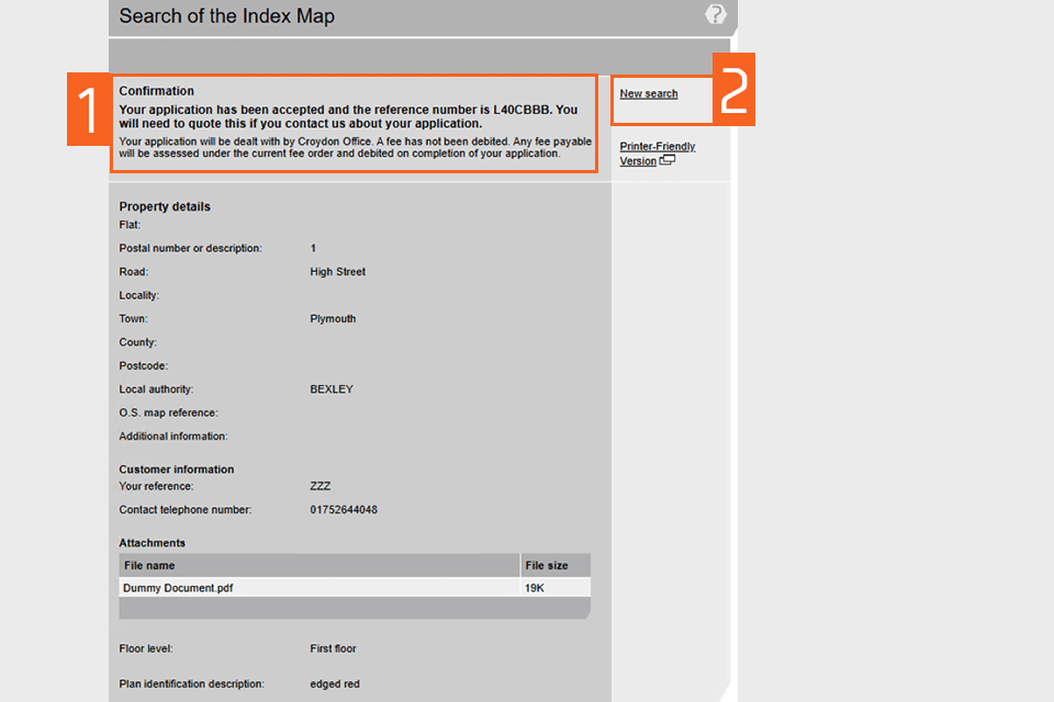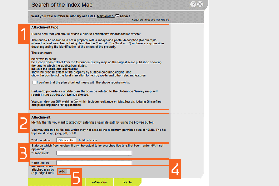HM Land Registry portal: request a search of the index map