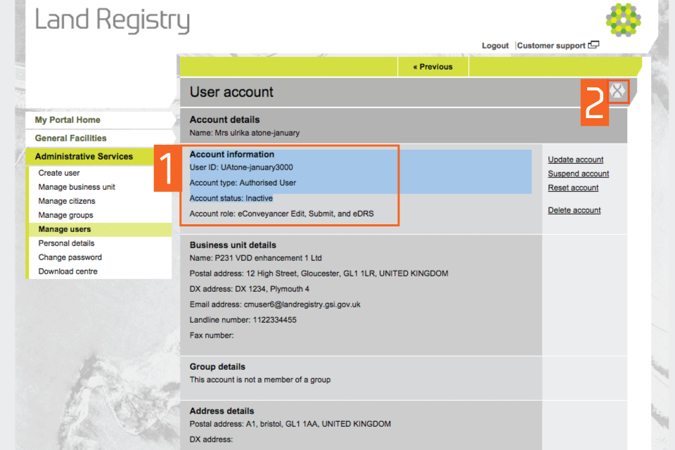 - The account status will show the account as ‘Inactive’. This will not change until the user logs in with the temporary password, selects a new password and resets their shared secrets.