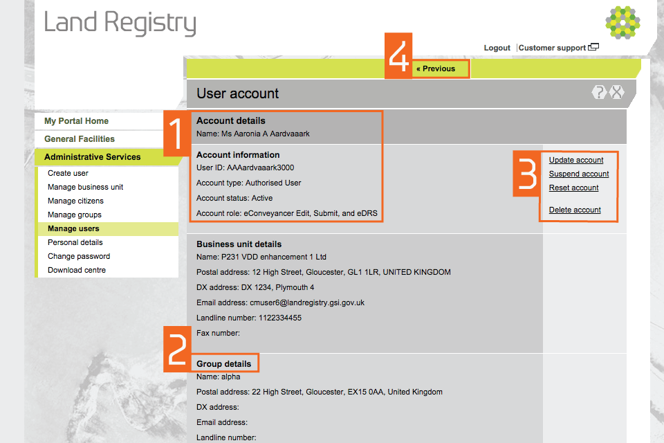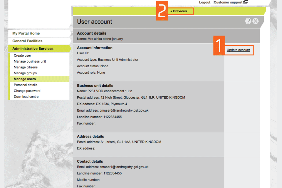 - Once you’ve found the correct account details, the links on the right hand side can be used to update the account details.