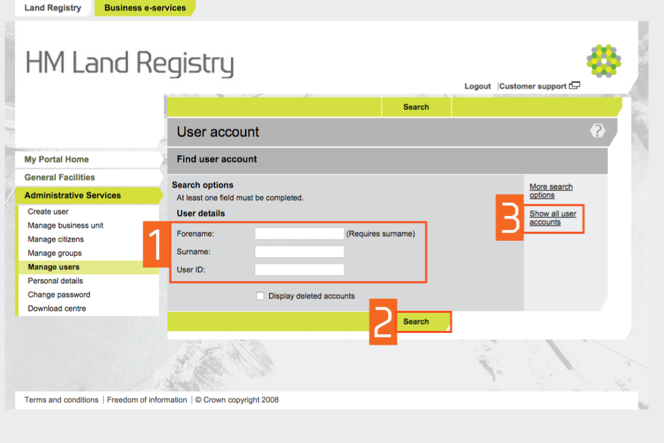 If a user account has been suspended or deleted, you cannot access their PDFs in the ‘Another user’s downloads’ area. To access their files, visit the ‘Business Unit’ download area and search by title number or your customer reference.
