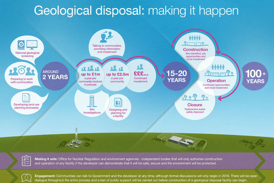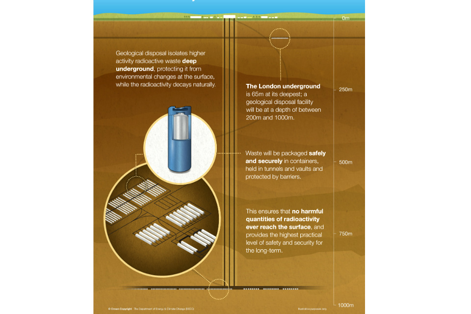 The UK Government is committed to implementing geological disposal for the safe and secure management of higher activity radioactive waste over the long term and favours an approach for selecting a site that is based on working in partnership with communities.