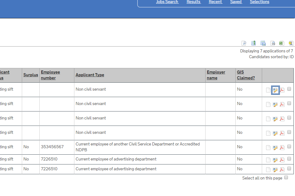 Often the applicant names will be hidden and the ID column will be used as the unique identifier for each application. This is done as the public sector has made a commitment to name blind recruitment.