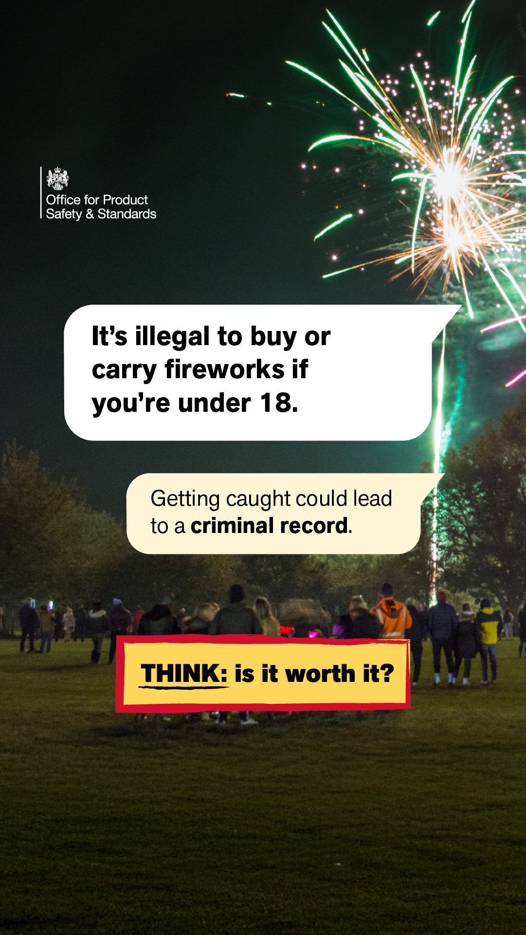 - It’s illegal to buy or carry fireworks if you’re under 18 / Getting caught could lead to a criminal record – THINK: is it worth it?