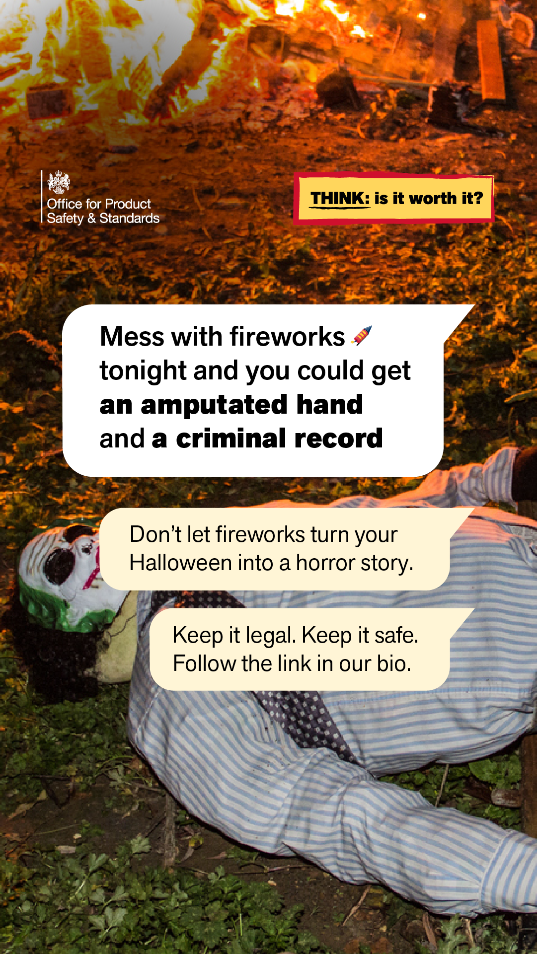 - Mess with fireworks tonight and you could get an amputated hand and a criminal record / Don’t let fireworks turn your Halloween into a horror story / Keep it legal. Keep it safe. Follow the link in our bio – THINK: is it worth it?