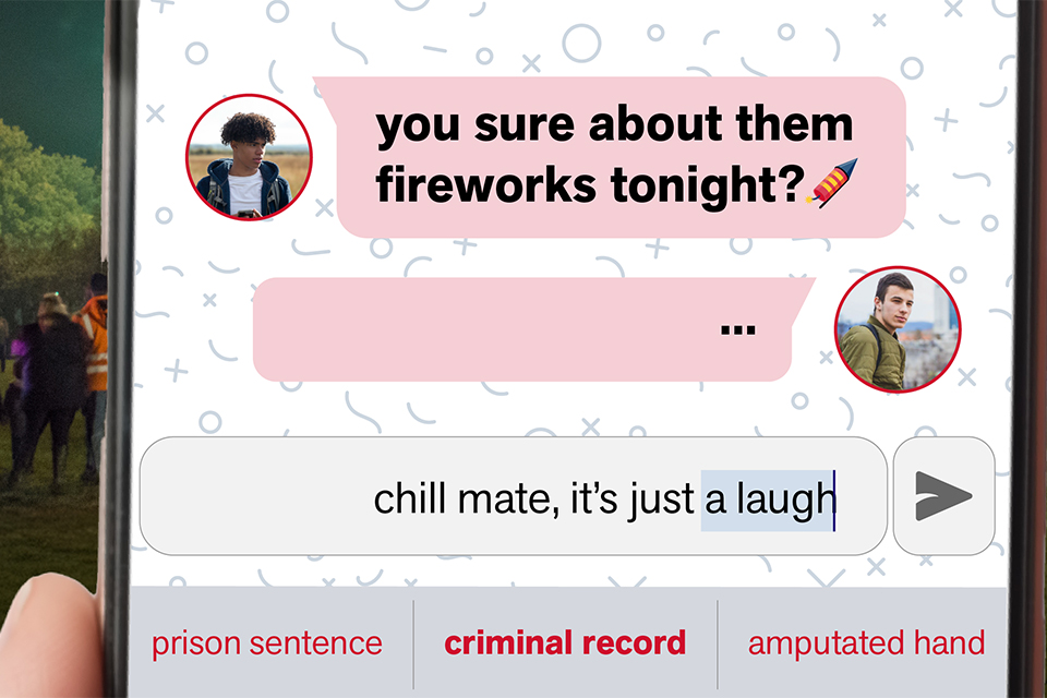 - Heard you gotta be 18 to carry fireworks? / Chill bruv, it’s bonfire night – A 5K fine / a prison sentence / a criminal record