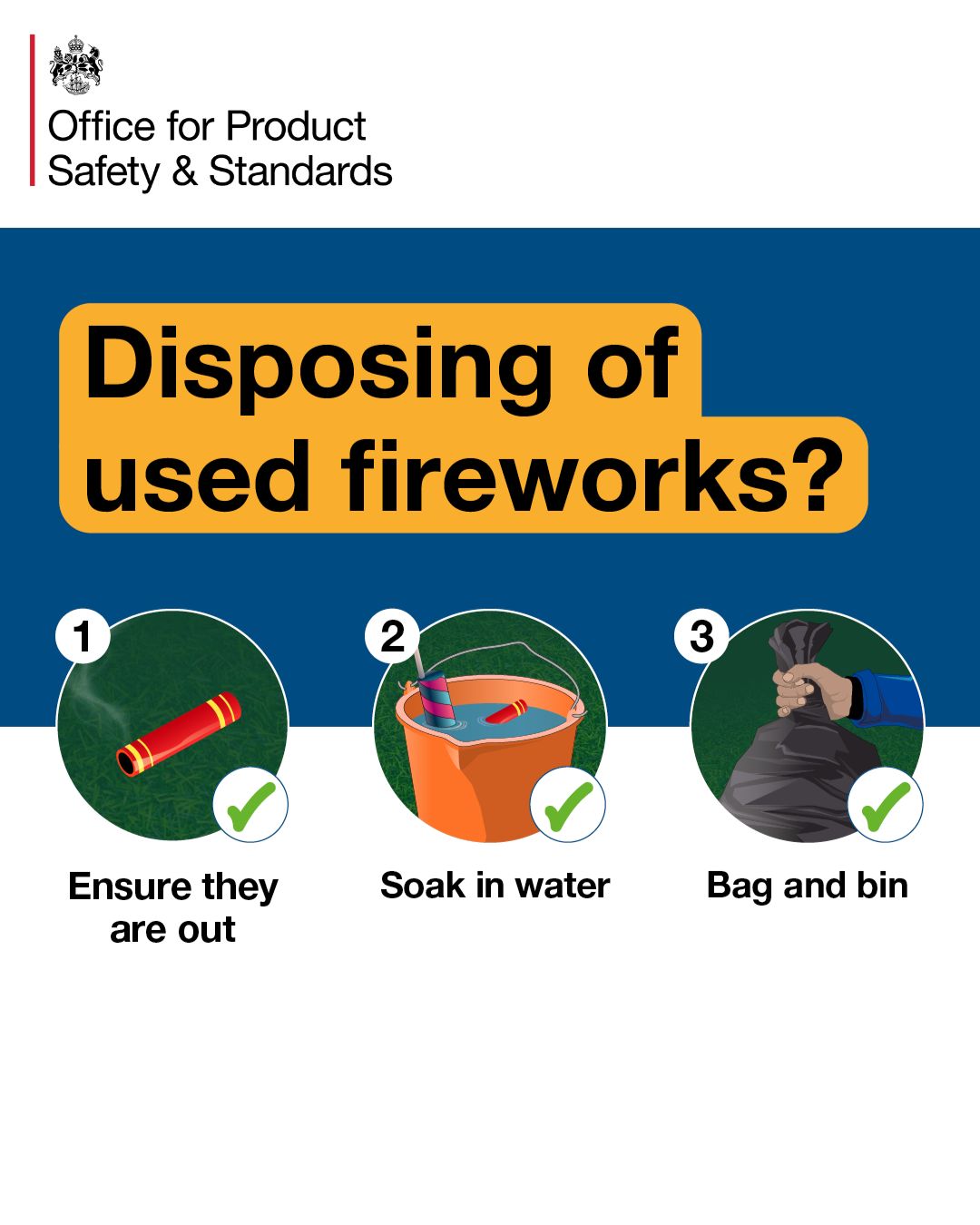 - Disposing of used fireworks? – Ensure they are out. Soak in water. Bag and bin.